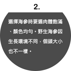 處理過後的海參會根據品種、大小、處理過程還有外觀完整性來分類品質以及價位。